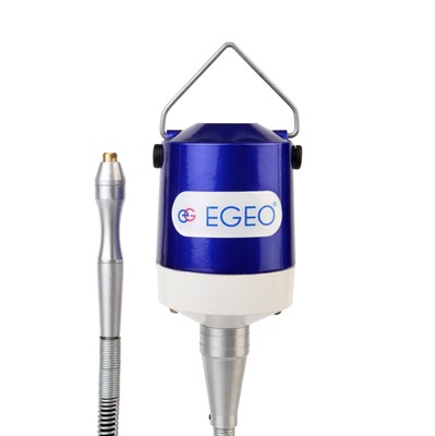 La pieza de mano es de aluminio anodizado y está montada sobre dos rulemanes para alta velocidad.