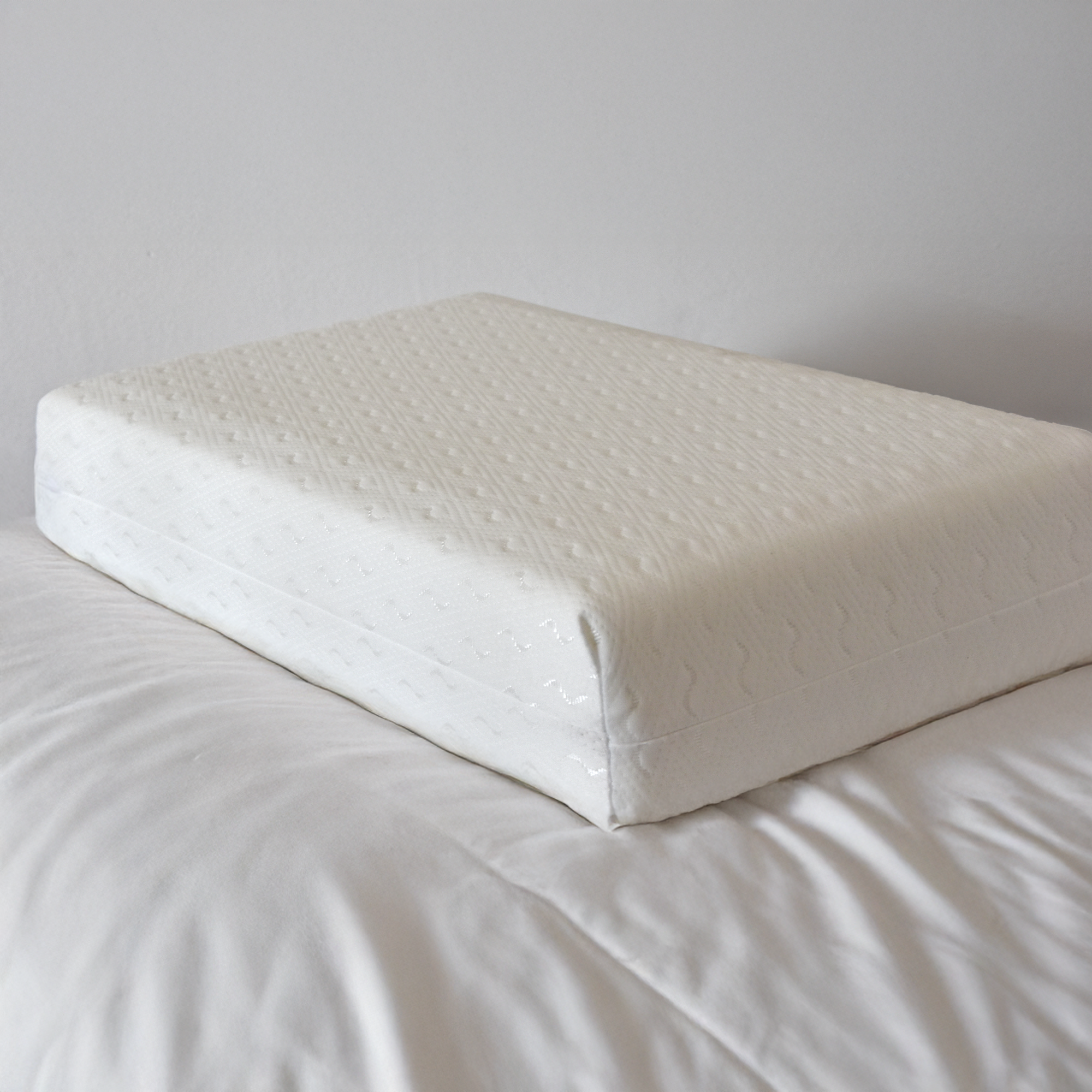 Almohada viscoelástica con diseño de confort dual, adaptándose a cabeza, cuello y hombros para evitar malas posturas y favorecer un sueño profundo y descanso efectivo.
