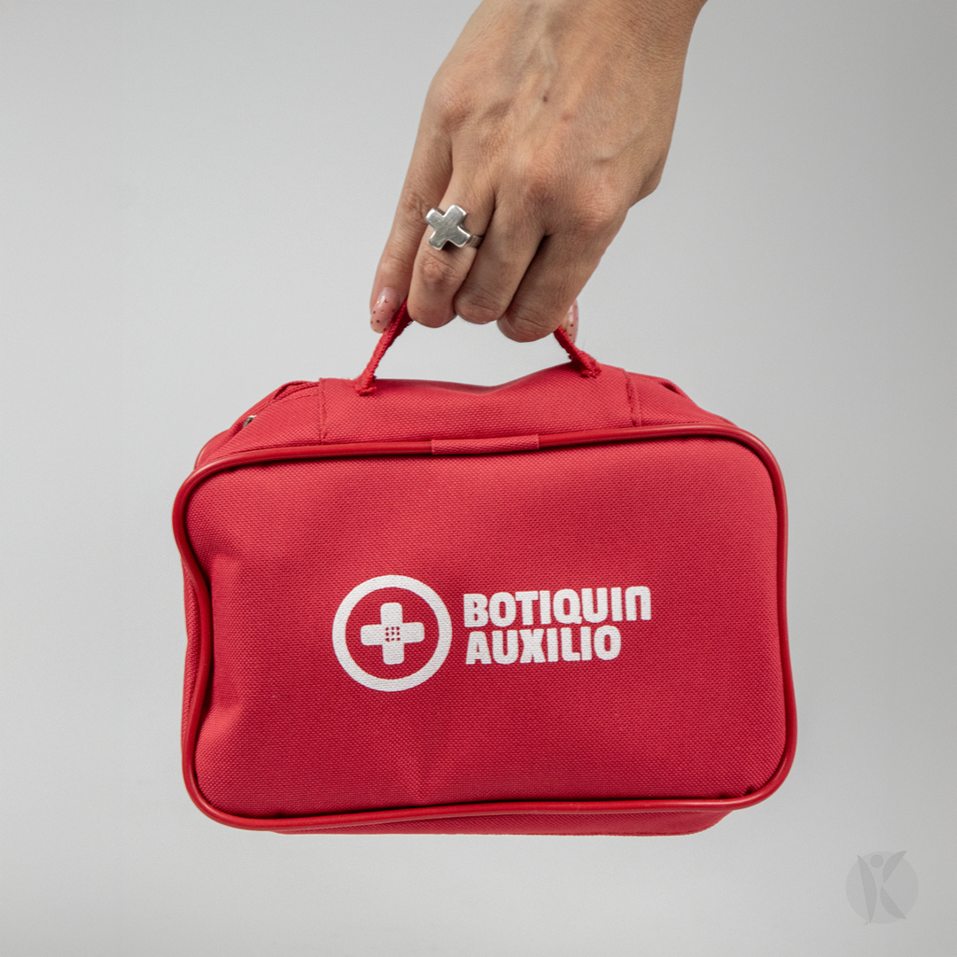 Botiquín de primeros auxilios tipo cartuchera, compacto y liviano, diseñado para responder ante curaciones básicas y emergencias leves en el hogar, el trabajo o el vehículo.