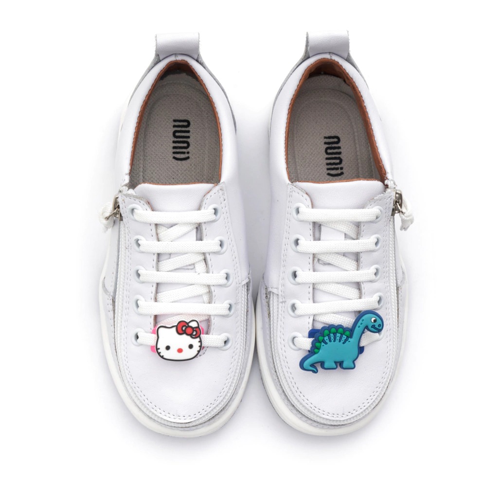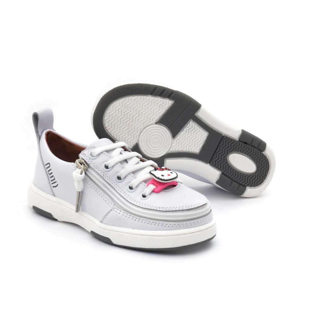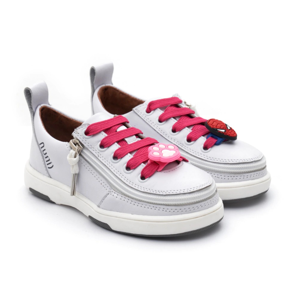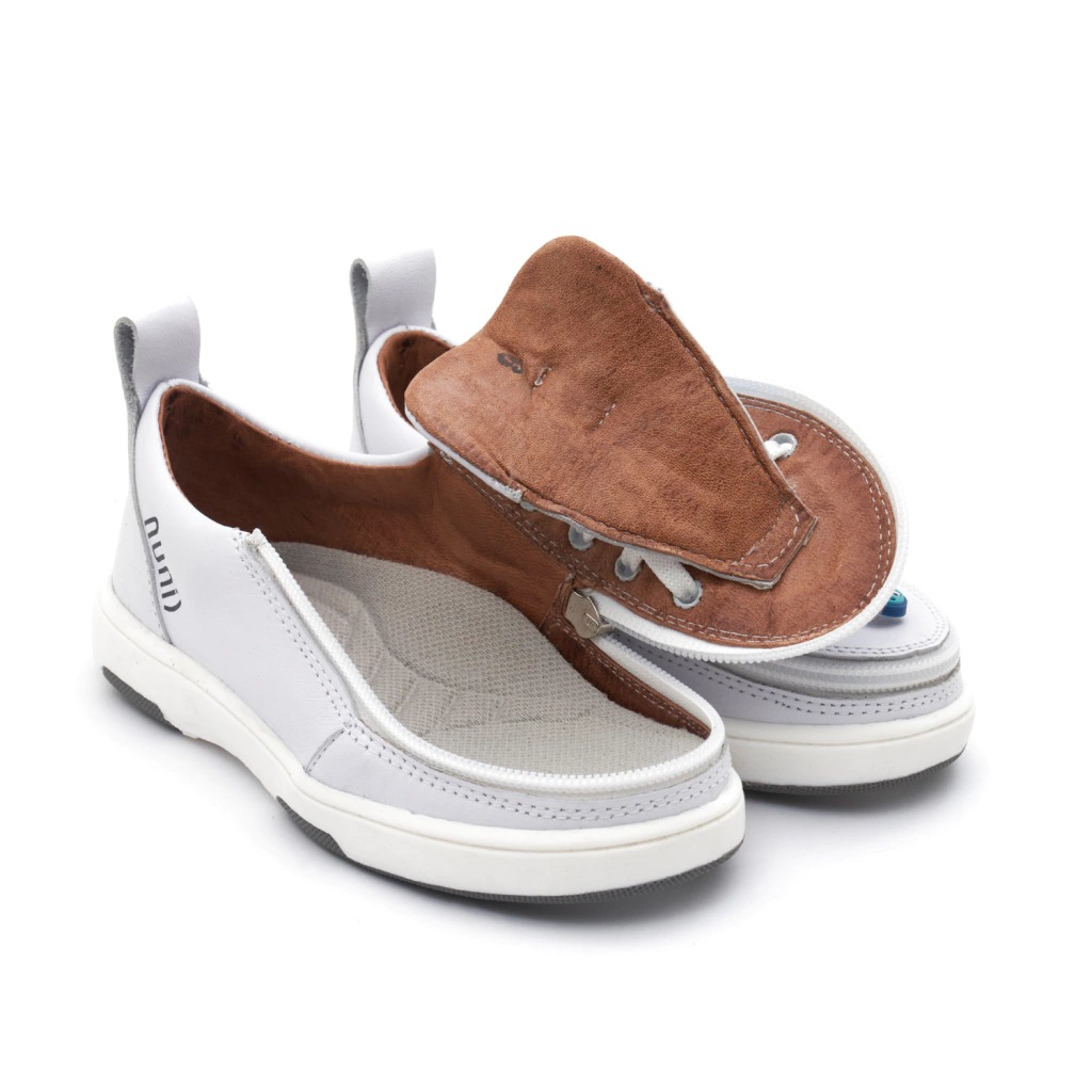Zapatillas blancas para niños, con cierre de apertura total frontal, cordones blancos y suela antideslizante, cómodas y seguras.