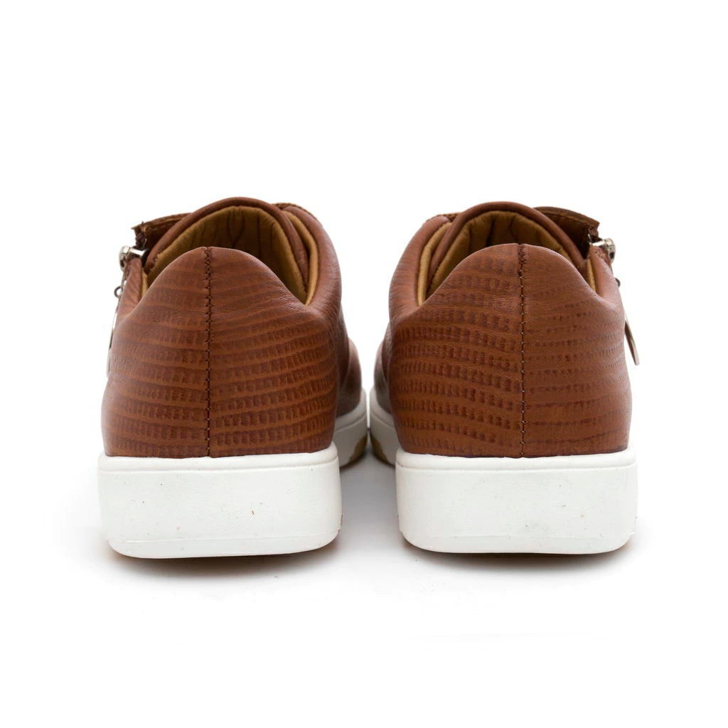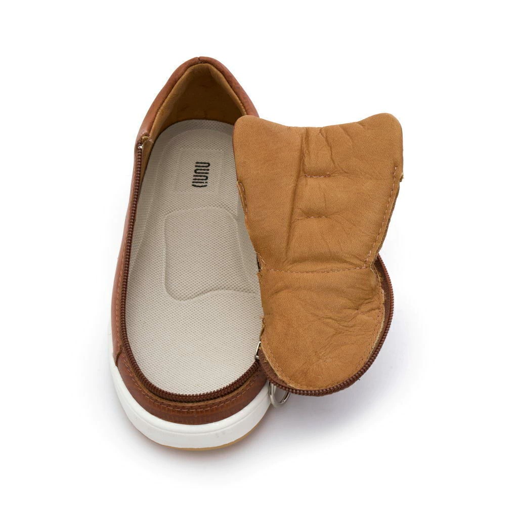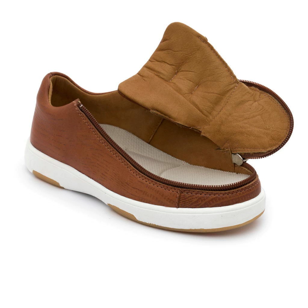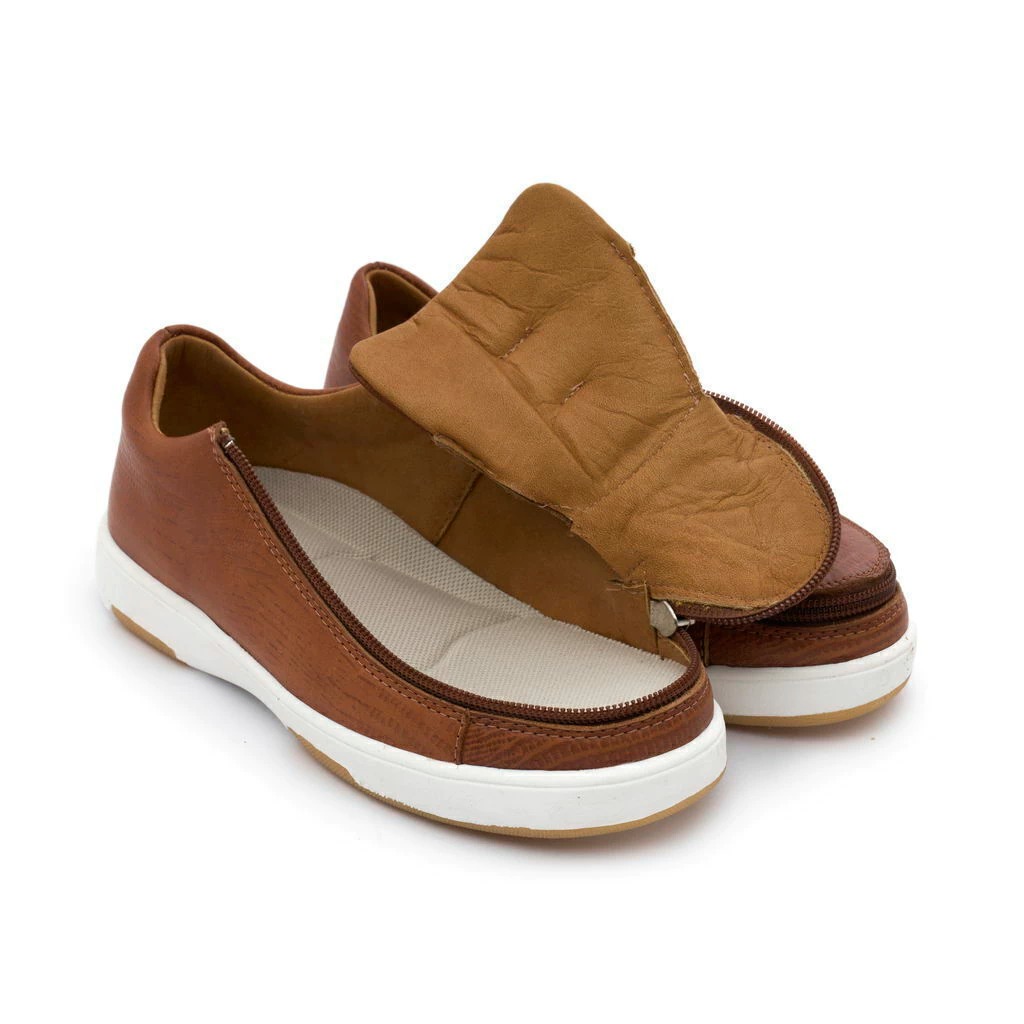 Zapatillas de cuero con apertura total frontal mediante cierre, forradas en cuero interior y exterior, con suela antideslizante y plantilla desmontable.