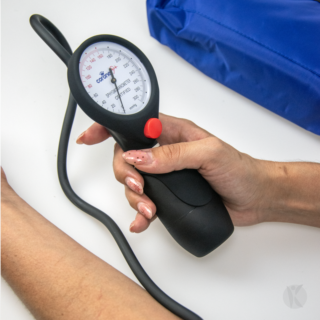 Tensiómetro aneroide con manómetro de 60.2 mm, manga de algodón con anillo y cámara de látex.