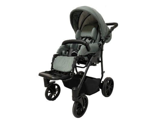 Silla de paseo y postura pediátrica multiposicional. Chasis compacto de 58cm de ancho con ruedas sólidas antipinchaduras, asiento con respaldo reclinable (de 80° a 160°) y basculación (tilt) de 0° a 25°, permitiendo regulación postural y descanso funcional. Cuenta con asiento reversible (mirando hacia adelante o hacia el cuidador), reposacabezas regulable, capota de protección solar, y barra de seguridad desmontable para un entorno seguro y confortable. La unidad incluye soportes laterales, cojines laterales intercambiables de 2,5 cm y 5 cm, y arnés de 5 puntos tipo pechera que proporciona sujeción completa del tronco y pelvis. La plataforma de reposapiés es regulable en altura e inclinación e incorpora correas ajustables para los pies. También incluye abductor anatómico, bandeja desmontable para actividades recreativas y terapéuticas, cubrepiernas acolchado, protector de lluvia, bolsa portaobjetos inferior y bolsa de transporte adicional. Adaptable al crecimiento del usuario mediante insertos de espuma que reducen la profundidad del asiento en 2,5cm y 5 cm según necesidad. Estructura plegable para facilitar transporte y almacenamiento. Ideal para uso clínico, domiciliario y escolar.
