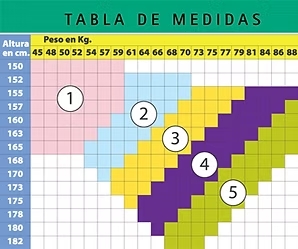 Talle: Se determina según la relación entre el peso y la estatura del usuario.