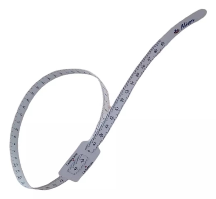 Medidor de circunferencia tipo lazo corredizo construido en material flexible que se adapta permitiendo realizar las mediciones de maneta exacta.