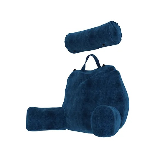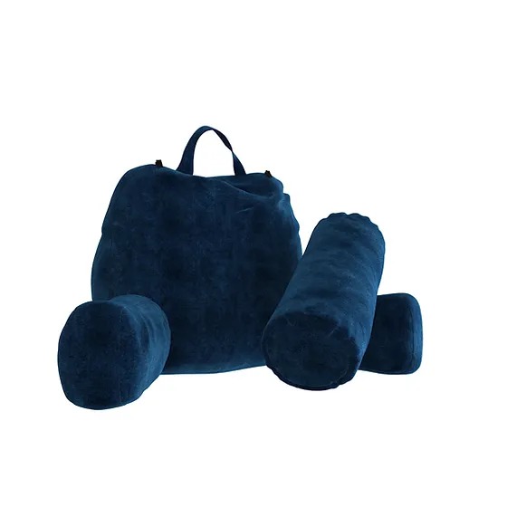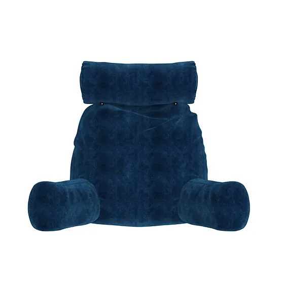 Cojín ergonómico diseñado para brindar confort y soporte durante momentos de descanso, lectura o trabajo desde la cama o el sofá, adaptándose al cuerpo de forma anatómica.