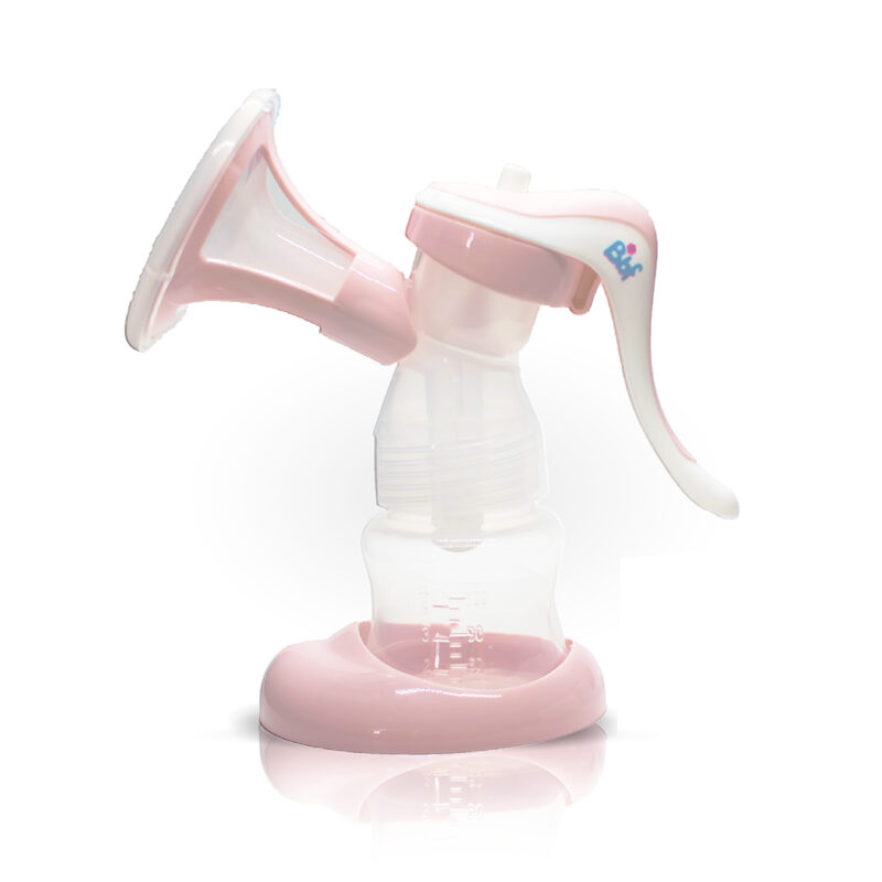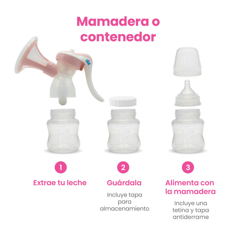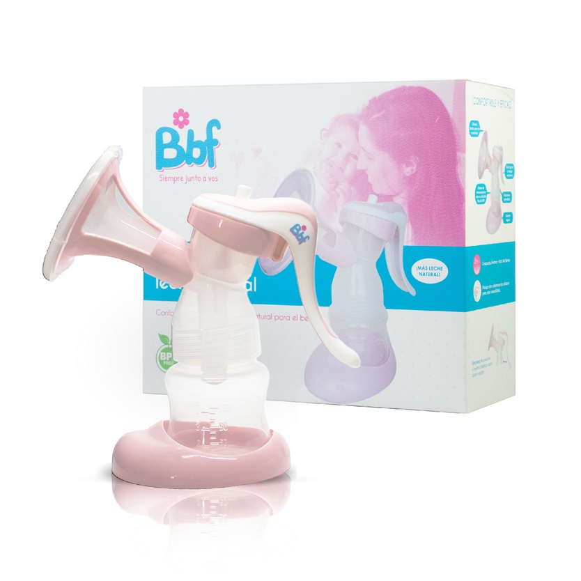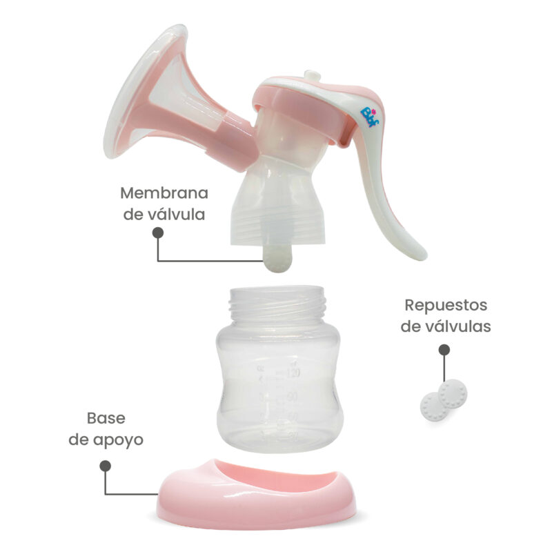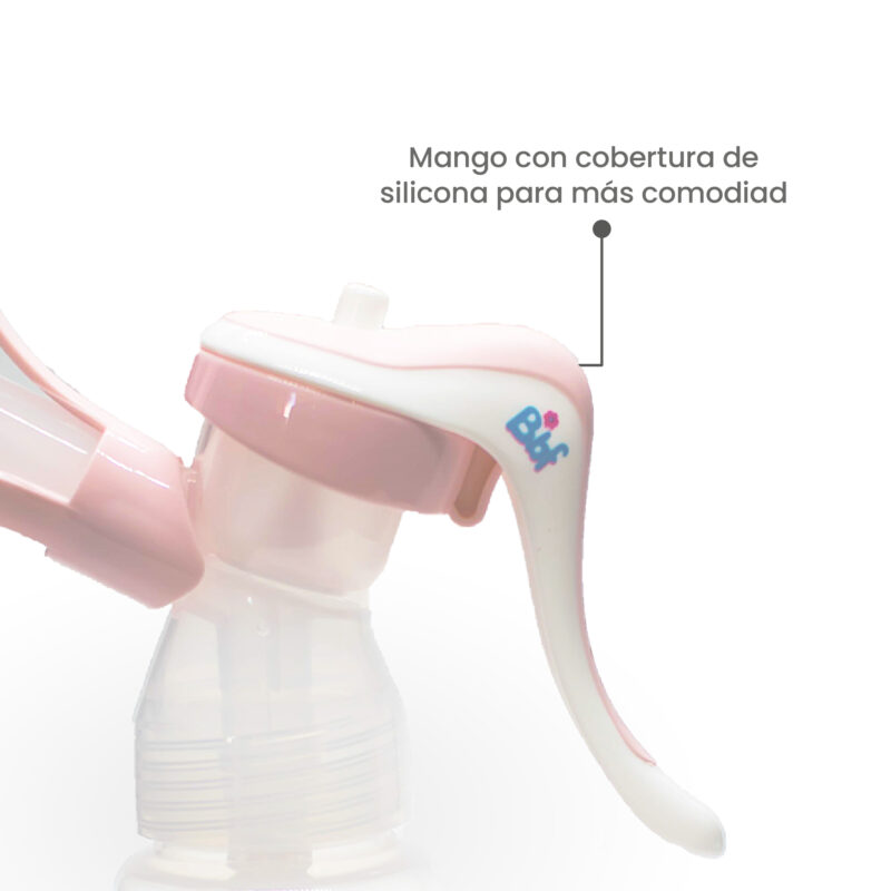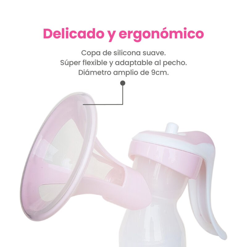 Extractor manual compacto y liviano, con sistema anti-reflujo y pezonera de silicona que imita la succión del bebé, cómodo y seguro.