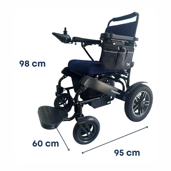 Silla de ruedas eléctrica plegable con diseño ergonómico, pensada para recorrer largas distancias con estabilidad, seguridad y facilidad de transporte.