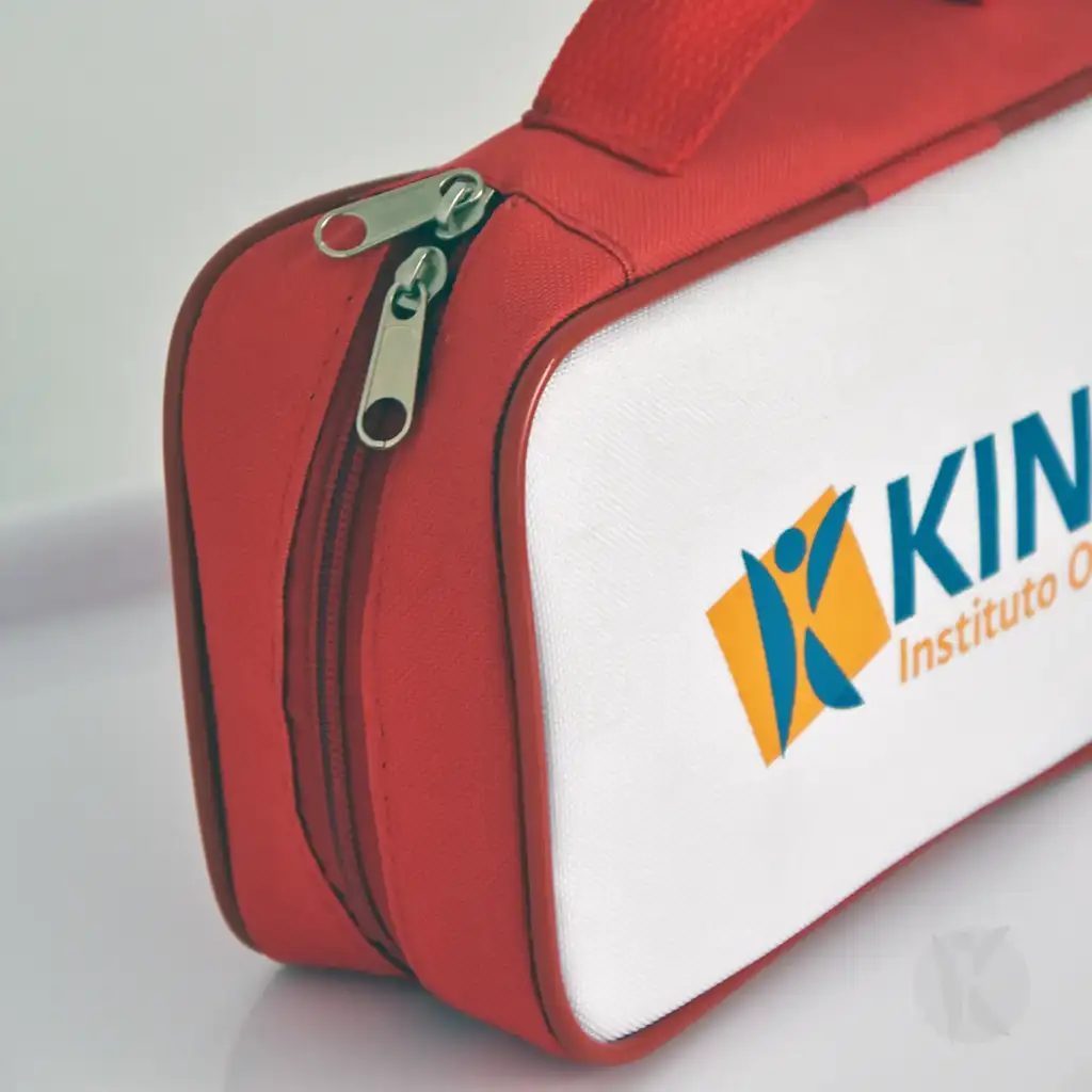 Bolso de cordura importada con divisiones internas, porta objetos y bolsillo de red con elástico, práctico y compacto para transporte.