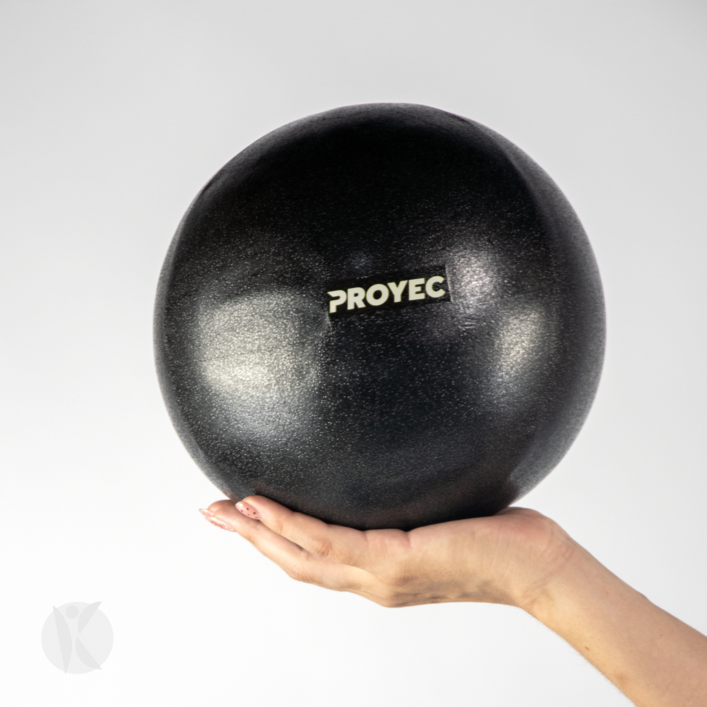 Mini pelota de esferodinamia reforzada, ideal para ejercicios de elongación y entrenamiento funcional. Brinda seguridad y control durante el uso.