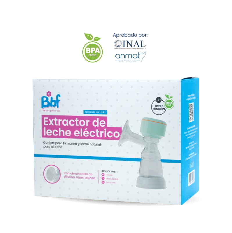 Extractor de leche materna portátil con motor integrado, control táctil y funciones de masaje, estimulación y extracción, seguro y aprobado por INAL y ANMAT.